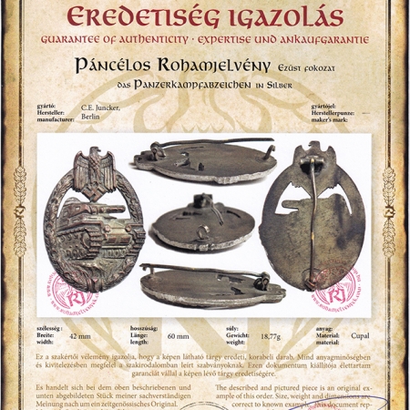 Páncélos Rohamjelvény Ezüst fokozat – C.E. Juncker, Berlin – Cupal