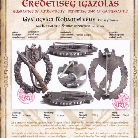Gyalogsági Rohamjelvény Ezüst fokozat – Cupal – Vienna design