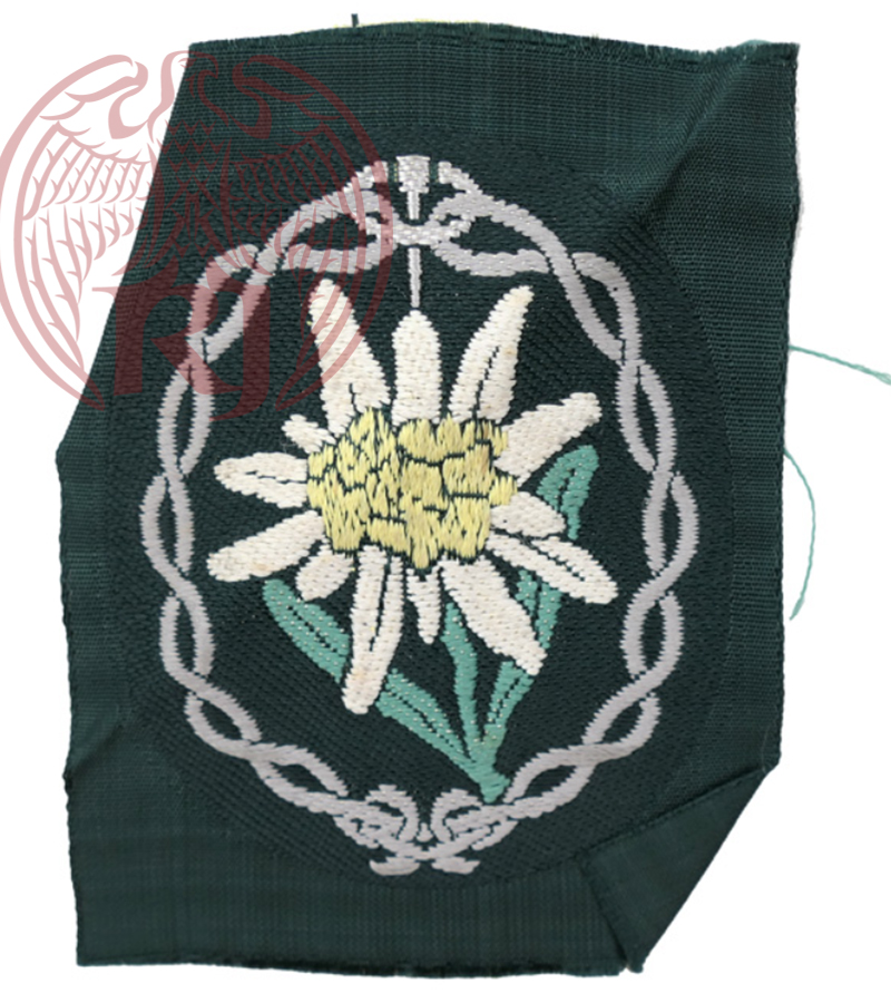 A Heer BeVo-stílusú hegyivadász havasi gyopárja, melyet a zubbony kar részére varrtak fel. Kiváló állapotban.