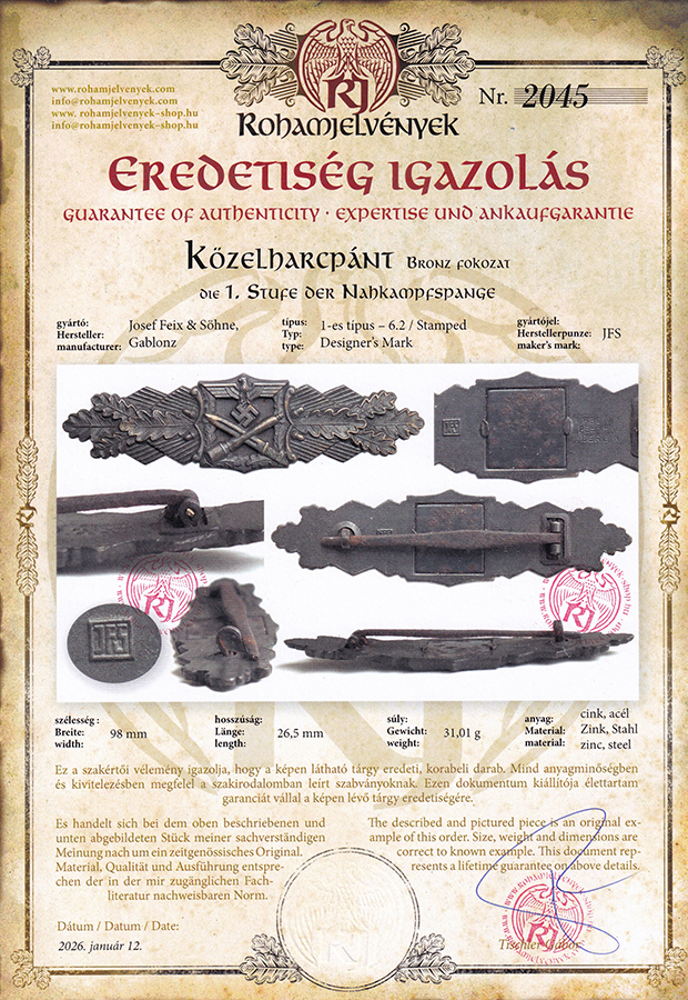 Az 1-es típusra jellemző, hogy a bajonetten lévő keresztvas teljes ( nem hiányos, mint a 2-es típuson ).