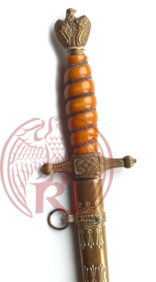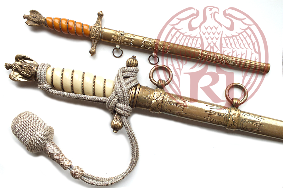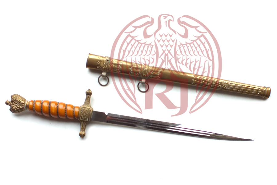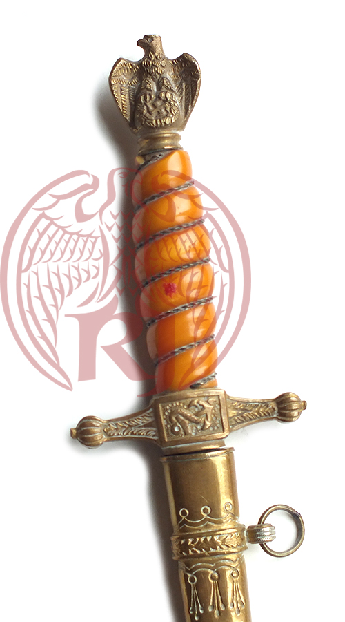 A Kriegsmarine tőrök miniatűr változatai kimondottan ritkán kerülnek elő. Kiváló állapotú, sérülésmentes tőr, amely jól mutathat a teljes méretű mellett.