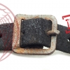A bőr rugalmas, de hajtásra előfordulhat, hogy a végei törnek. Szemmel láthatólag kezelték és öregítették a bőrt, az eredeti hosszú részt is, és a csatos hamisítványt is, hogy eredetinek tűnjön.