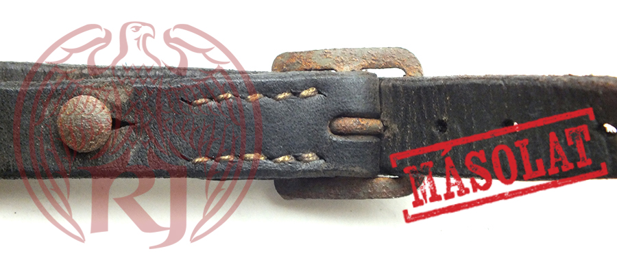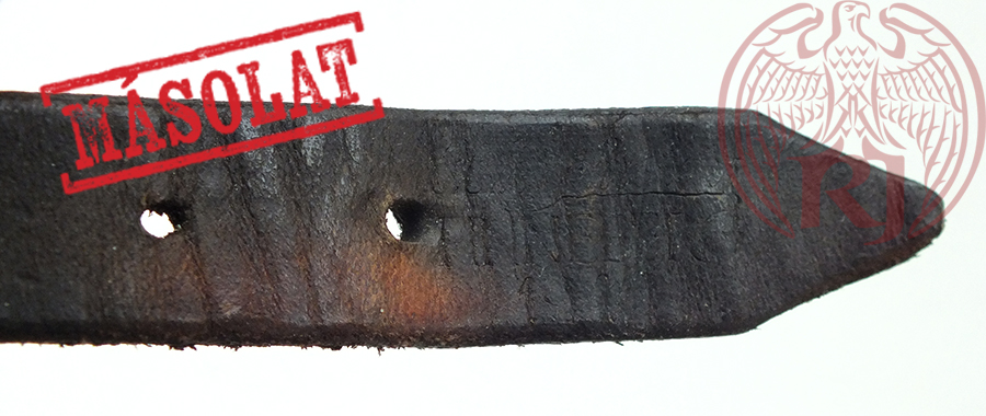 A bőr rugalmas, de hajtásra előfordulhat, hogy a végei törnek. Szemmel láthatólag kezelték és öregítették a bőrt, az eredeti hosszú részt is, és a csatos hamisítványt is, hogy eredetinek tűnjön.