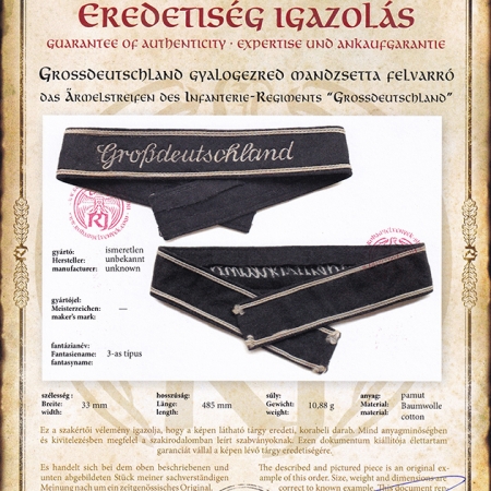 Großdeutschlad mandzsetta felvarró – 3-as típus
