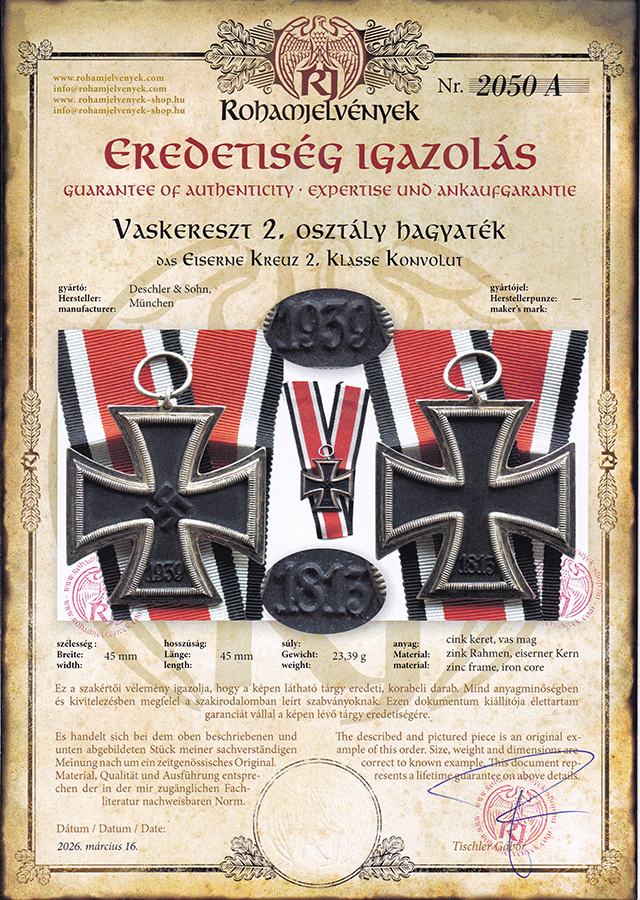 A katona ezek szerint 1944 decembernek elején-közepén esett el. Viszont a háború korai szakaszában gyártott jelezetlen Deschler & Sohn Vaskereszt 2. osztályt küldtek ki, ami azt jelenti, hogy a hadosztály raktárkészletén még volt korai gyártású komplett kitüntetés tasakkal és védőpapír borítással.