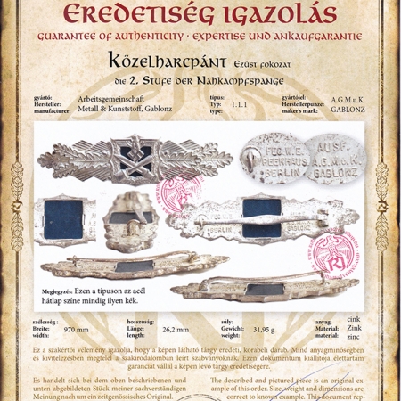 Közelharcpánt Ezüst fokozat – A.G.M.u.K. 1.1.1